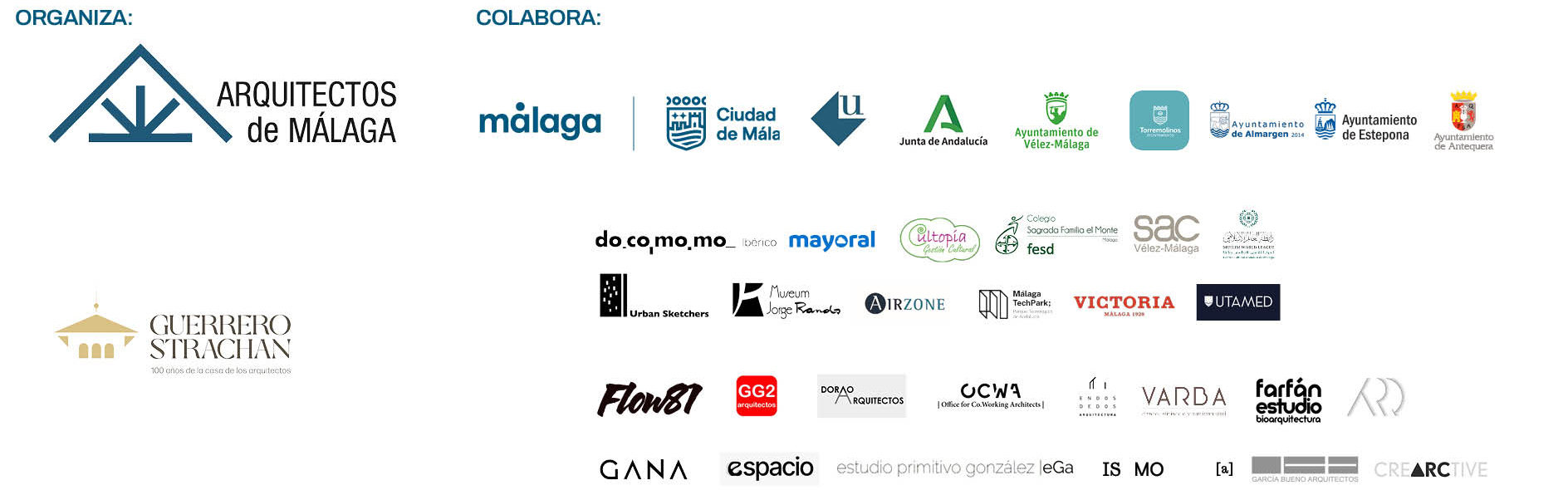 La organización de la Semana de la Arquitectura 2025 en Málaga es posible gracias a numerosos colegiados, así como a las siguientes empresas, organizaciones y administraciones públicas colaboradoras: