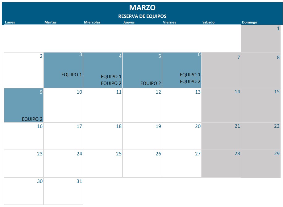 Disponibilidad. Fechas con reservas confirmadas.